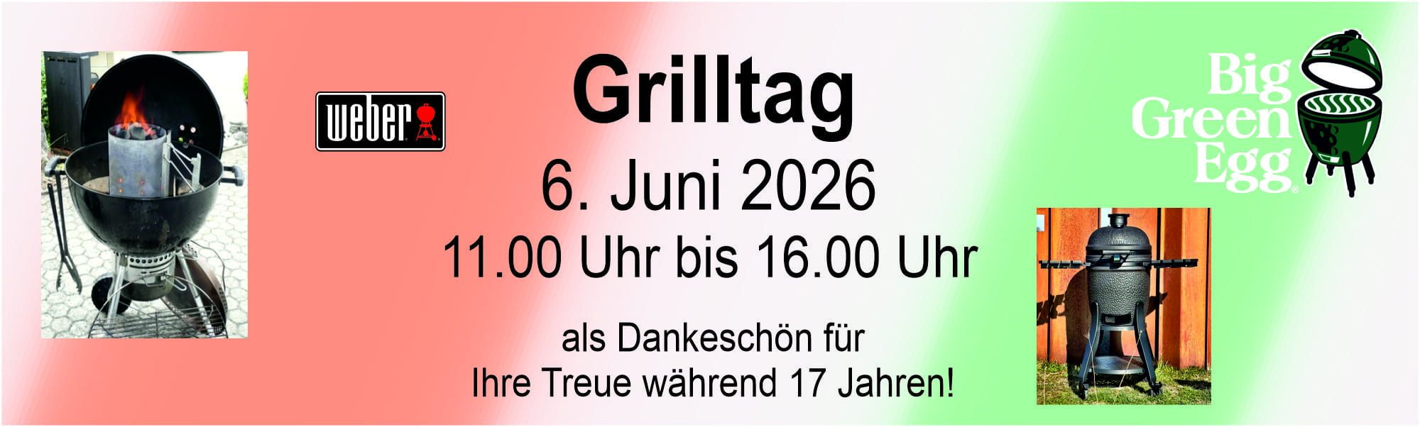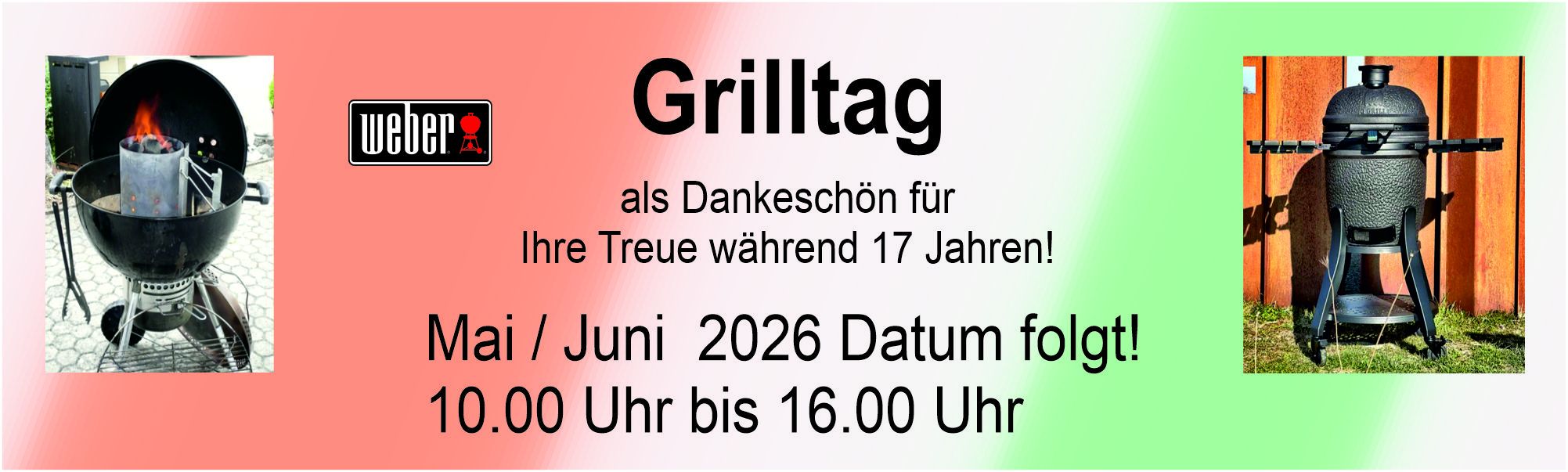 Nach 17 intensiven und schönen Jahren mit dem Grillverkauf WEBER und Big Green Egg haben wir uns entschieden, etwas kürzer zu treten.